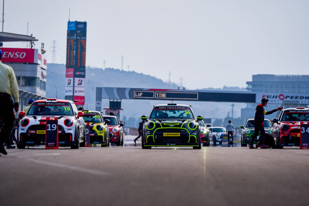 MINI CHALLENGE JAPANは、MINIのレース専用車両で競われるワンメイクレースです。ワンメイクレースとは、同じ条件に近い車両で競うレースのことで、車の性能差だけではなく、ドライバーの技術や判断力、チームの準備力が結果に大きく影響します。
